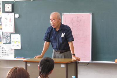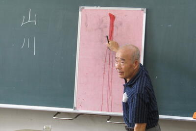 9月5日(木)午後、元南関四小校長の大里先生が、3年生に毛筆を教えてくださいました。「山川」を、半紙いっぱいに書きました。