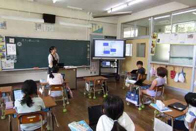 9月17日(火)5校時、3年生は算数の授業でした。玉名教育事務所から池田指導主事にお越しいただいて、研究授業をしました。