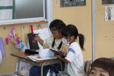 10万を超える8桁までの大きい数の数え方を位を意識して勉強しました。タブレットパソコンを使ったり、話し合ったりして、全員がよく集中して学んでいました。