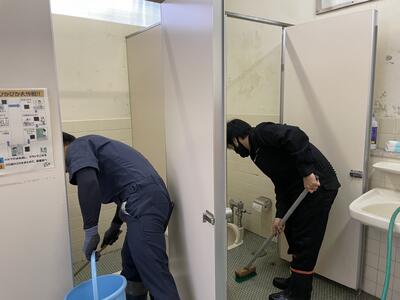 運動場はもちろん、プール周りや土手、校舎周り、体育館周りと、校地のほぼ全てが除草されたうえ、外トイレもきれいになりました。刈った草や木の枝も、何台ものトラックで運び出していただきました。