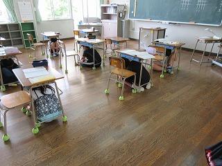 今回は密集をさけるため、運動場への避難はしないで、地震が起きたときどうするのかについて、各学級で話をしました。