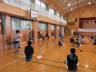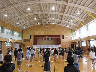 1時間目は各学級で行い、2時間目は体育館に集まりました。