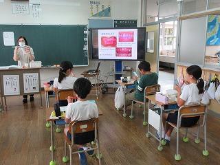 保健の先生が歯を大切さについて話をされ、歯みがきのポイントを確認しました。