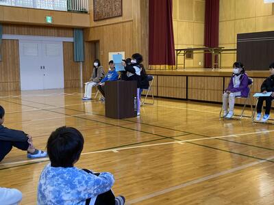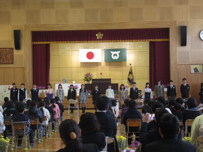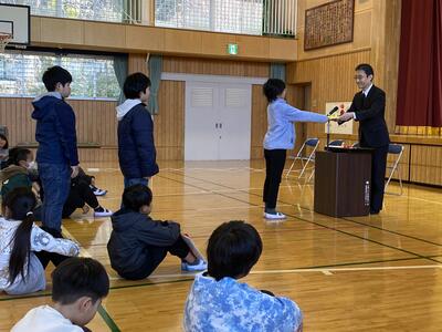 1年間、たくさんの学習や行事を通して、大きく成長した子どもたち。修了式では、学年の代表の子どもたちが1年間の振り返りを発表してくれました。他の子どもたちも、頑張ったことや来年度に向けての目標をそれぞれ考えながら、真剣に聞いてくれました。