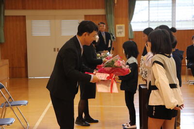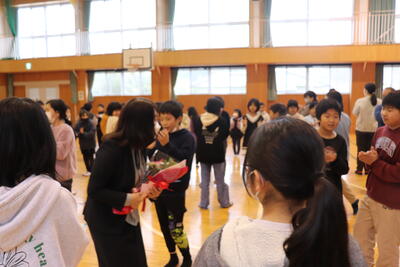 先生方から子どもたちに向けてお別れの挨拶をいただき、子どもたちも静かに耳を傾けていました。お世話になった先生方への感謝の気持ちをしっかりと伝えることができました。