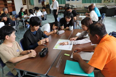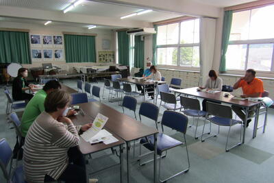 協議会委員の清田さん、山口さん、田畑さん、教育委員の本多さん、PTA会長の平嶋さん、町教育委員会の米澤さん、伊藤さんが参加くださいました。学校と地域、保護者、行政で今年の四小のめざす姿を確認し、学校環境整備に向けた「美化部」の立ち上げと募集チラシの配付等、今後の見通しを立てました。また地域の防犯に向けた意見等もいただきました。