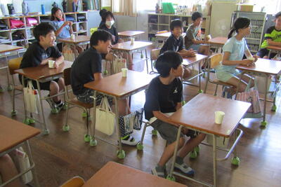 6月13日(木)、今日からフッ化物洗口を始めました。四小では、2時間目と3時間目の間の業間の時間を使います。