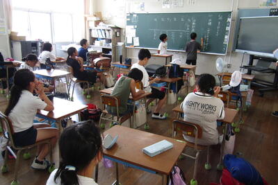 南関町は、「子ども体力向上推進コンソーシアム」が組織されていて、町内5校の体育の授業にサポートを派遣してもらえます。四小では、今週から水泳の授業のサポートが始まり、学校の先生と一緒に専門的な指導や個人指導をしてくださいます。