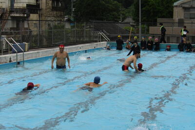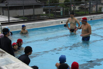 6月24日(月)の水泳の授業のサポートに、今日はアレスト玉名の高野先生、有働先生が来てくださいました。