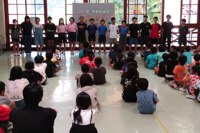 2時間目のあとに、体育館で夏休み前集会をしました。