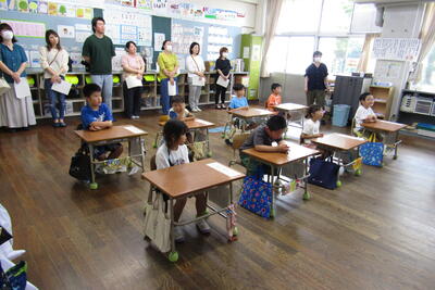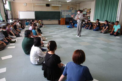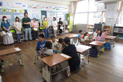 7月8日(月)、四小校区の民生児童委員さん、町の児童委員さん、社会福祉協議会の方、合わせて9人の皆さんが四小の訪問にいらっしゃいました。