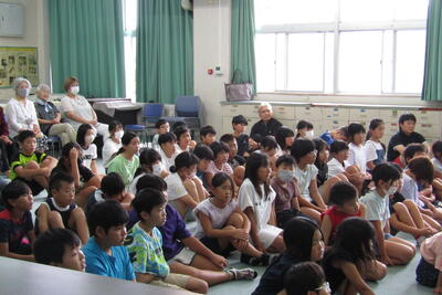 次に、松永欣子さんから、自分が小学生だった頃の戦争体験の話に加えて、対馬丸沈没や広島の建物疎開での被害者に、四小の児童と同世代の子どもたちがたくさんいたことを教えていただきました。