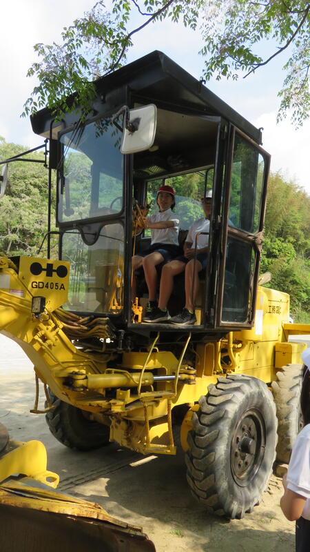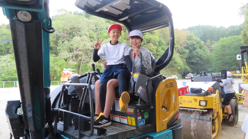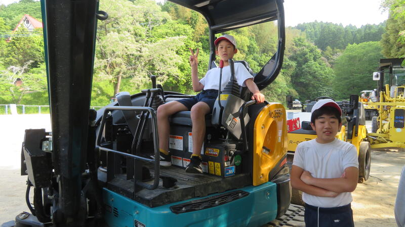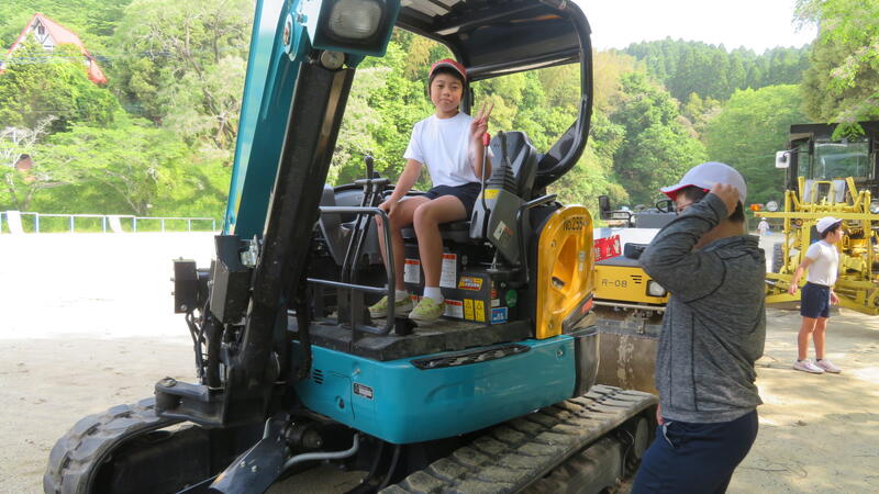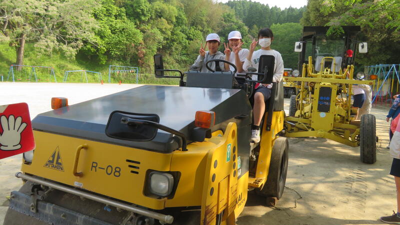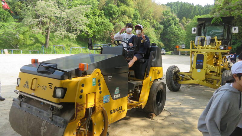 1時間目には、5・6年生合同で、重機にのせていただく体験をしました。子どもたちは、道路工事等で使用する大きな重機にのせていただき、嬉しそうでした。