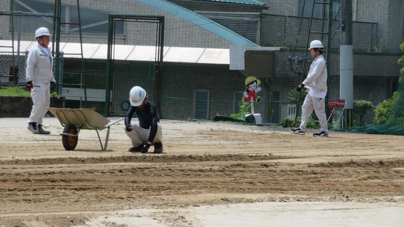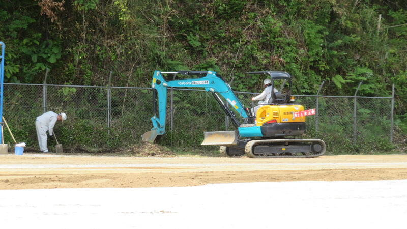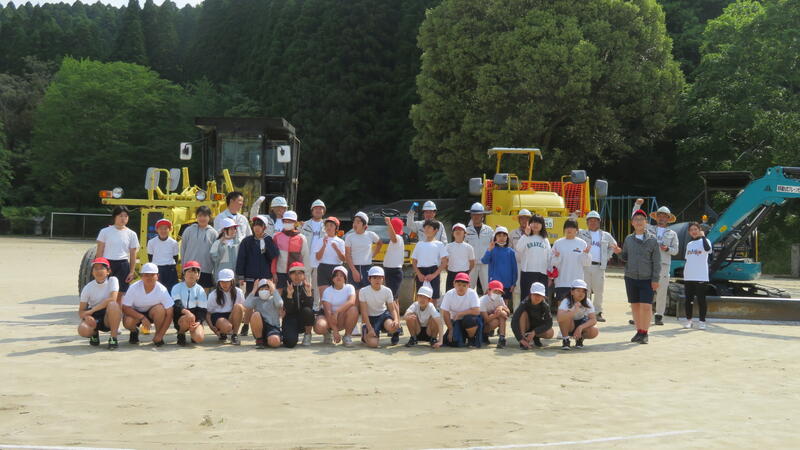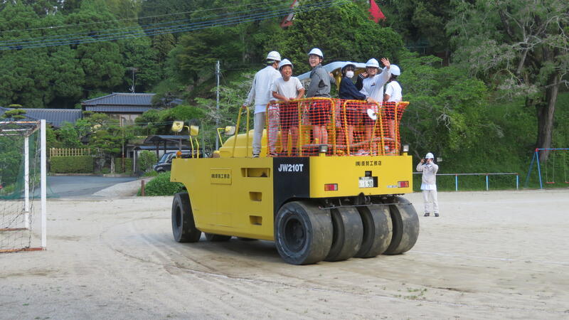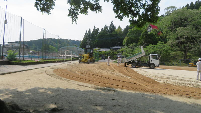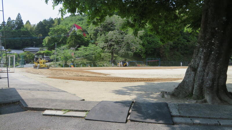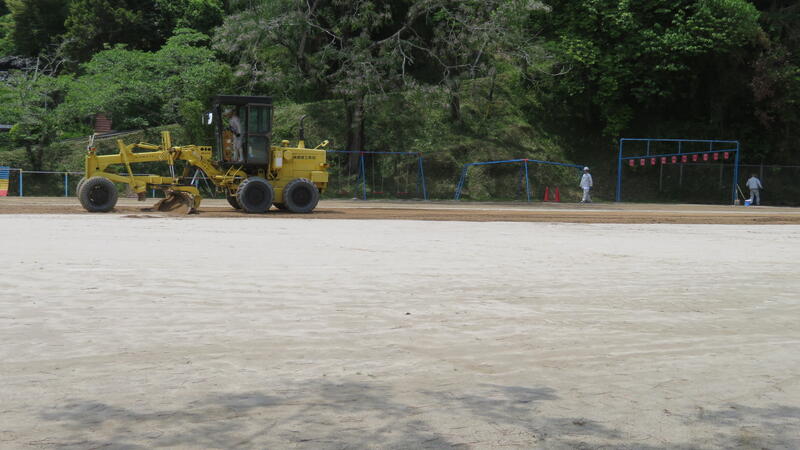 2時間目が運動会練習でグランドを使用しましたので、その後から夕方まで、グランドに山砂を入れてくださったり、グランドがしっかりしたものになるように重機で固めていただいたり、グランド周辺の草刈りをしてくださったりとすべてボランティアでしていただきました。たくさんの方に支えられて運動会ができることに感謝です。本当にきれいなグランドになりました。地域の企業の支えや応援に感謝の気持ちでいっぱいです。ありがとうございました。