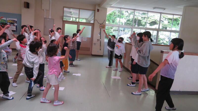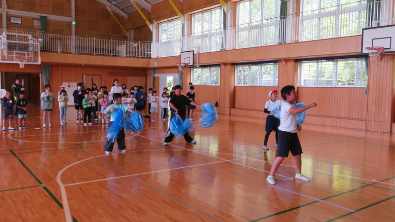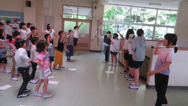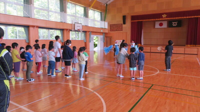 それぞれの団に分かれて、応援の練習もしました。まだ、応援団長以外の応援団員さんたちは少し恥ずかしそうにしていましたが、当日までには見違えるようにたくましく成長してくれると思います。団員以外の子どもたちも、応援歌を歌ったり、手拍子で応援したりしながら、メリハリある動きができるようになると思います。