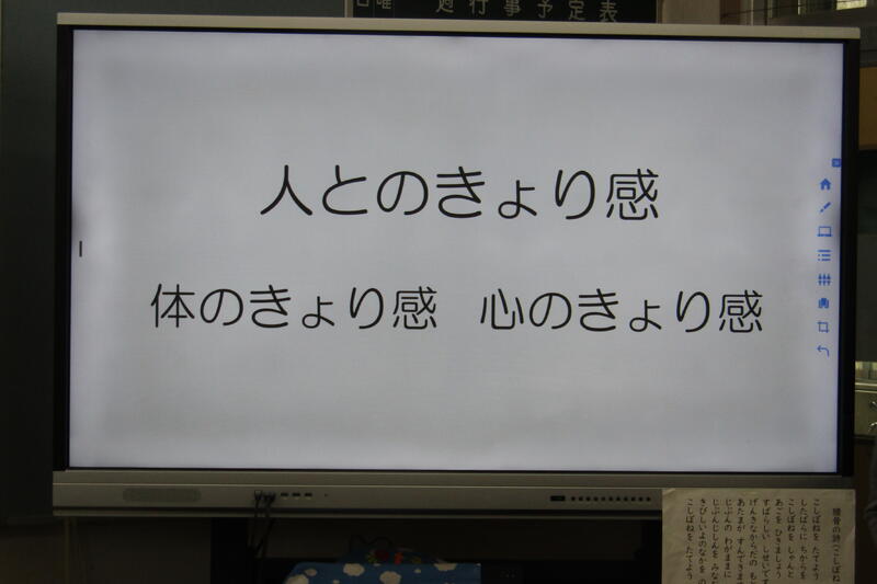 人(友だちの含めて)との距離感をつかむのは、難しいですね。からだの中でも特に大切なプライベイトゾーンの話や人の距離感について、具体的に話してもらいました。人との距離感は相手によって、自分の気持ちによって、相手の立場によって変わりそれぞれであること。どんなに親友であってもプライベートゾーン(水着で隠れる部分)は、見せたり、触らせたりするものではないこと。などについての話でした。また、人との距離感は、境界線(透明バリア)ともいい、からだ以外にも、ものや人の考え方などいろいろなものにあることも教えていただきました。お互いが嫌な気持ちにならない接し方についても考える機会になりました。友だちとの距離感を上手にとって、お互いの気持ちを尊重できる素敵な関係がつくれるようになればと思います。