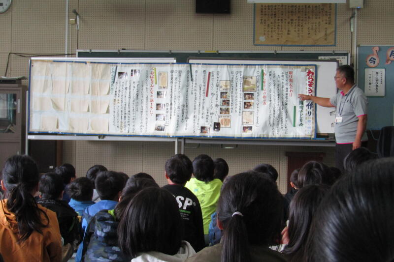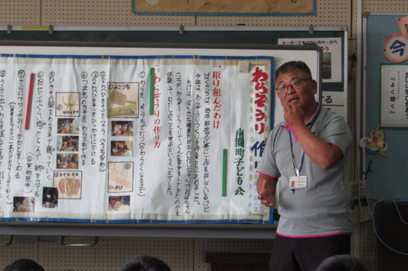 1年生の子どもたちは「おうちのお手伝いを頑張りたいです。」「ぼくも、わらぞうりを作ってみたいです。」と感想を発表していました。家族に対する思いや家族の仕事についても考えるよい機会になりました。