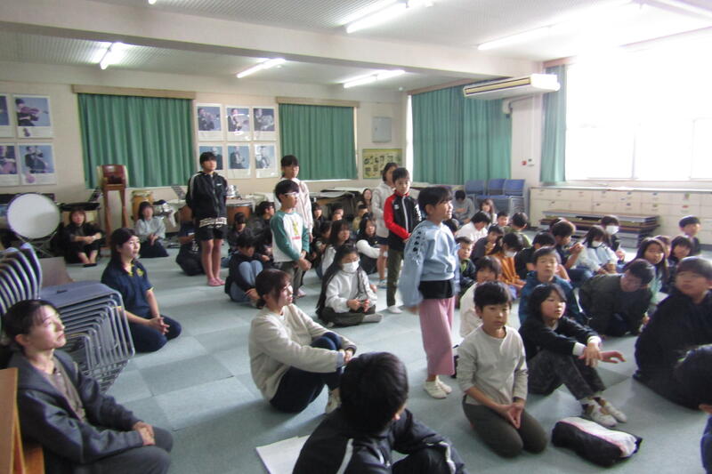 11月26日(水)の四小集会は、3年生と企画委員の発表がありました。3年生は、「すがたをかえる大豆」の学習で食材がいろいろな食品に変わることを学習しました。その後学習を広げて、「牛乳が原料でヨーグルトができる。」「小麦が原料でうどんができる。」など、他の食材からできる食品についても調べて、クイズとして全校児童に発表しました。いろいろな食材がすがたをかえることに子どもたちはびっくりしていました。そのほか、リコーダーと鍵盤ハーモニカの演奏、歌声を発表しました。元気いっぱいに、大きな声で発表する3年生のかっこいい姿に成長を感じました。企画委員会は「あいさつ」「ありがとう」「ごめんなさい」を気持ちよく言おうと呼びかけたり、新しくなった四小の人権宣言について説明したりしてくれました。明日からの四小がレベルアップするのではないかと期待できる集会でした。