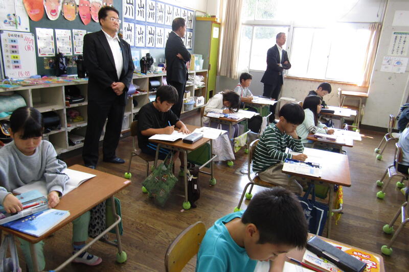 10月27日(月)に四小で南関町の校長先生方の会議がありました。会議の合間に各学年の授業を見ていただきました。「子どもたちが、教室での学習のきまりを守って落ち着いて学習している。」「学習にまじめて取り組んでいた。」などの感想を頂きました。子どもたちの頑張る姿が素敵でした。