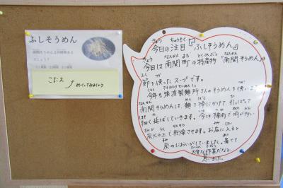 今日のスープは、南関町の特産物「南関そうめん」の「節」を使ってあります。