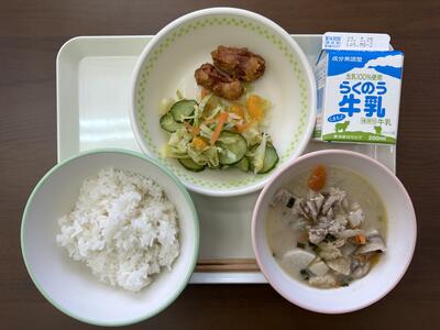 れんこんチップスは、薄切りれんこんを揚げて、黒ごまとアメを掛けてあり、おいしかったです。れんこんは年老いた母の作る煮物にはよく入っていましたが、我が家の冷蔵庫には入っていないなあ、と気付きました。せいぜい薄切りに処理された袋入りぐらいです。なかなか普段使いでは使わないれんこんですが、給食では煮物やサラダなど、定番の食材です。今日もおいしくいただきました。