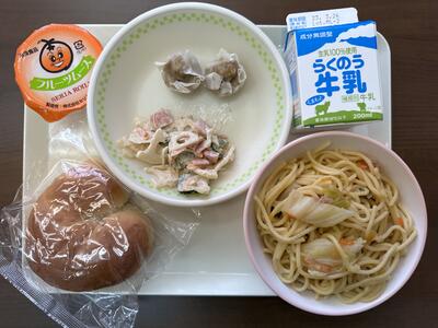 予定の献立表に、おととい出せなかったシューマイが追加されて、一層豪華になりました。しかもデザート付きの日だったので、ほんとにうれしい献立でした。個人的にはスパゲティも好きなので、、、