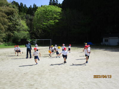 また、初めての体育の授業では、スリータッチおにごっこをしました。みんなで楽しく体を動かしました。