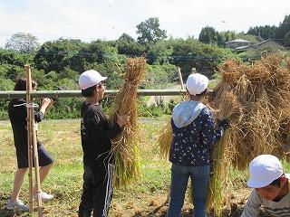 かけぼしをしました。たくさんある稲の束を運ぶのは大変でした。