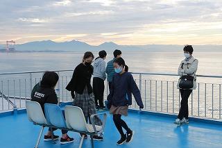 バスで長州港へ向かい、フェリーに乗って海を渡ります。