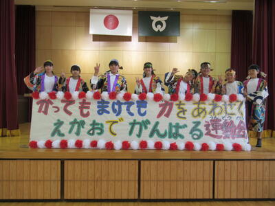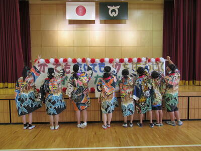 先日は、運動会のよさこいで使用した法被を身につけて、
