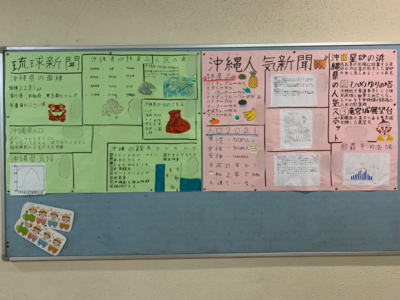 暖かい地域の自然条件に合った行事や、観光客数、特産物について学習し、それをもとに沖縄県についての新聞を作成しました。