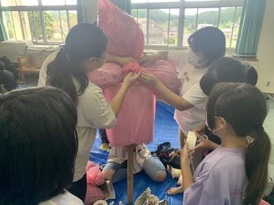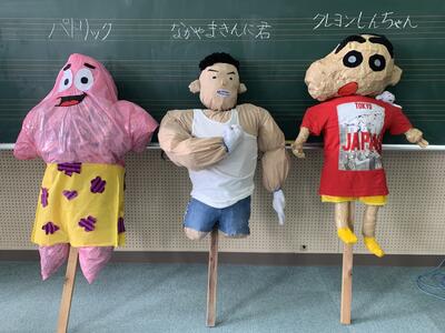 かかし作り(5年) 投稿日時 : 2022/08/22 承認者 8月21日に5年生のPTAレクリエーションでかかし作りを実施しました。 6月に行った田植えの豊作祈願と、10月に行われる南関町のかかしコンテストに向けて、 子どもたちと保護者の方々で協力して作りました。 今回は各グループに分かれて、パトリック、なかやまきんに君、クレヨンしんちゃんを作りました。 とても素敵なかかしが出来上がり、楽しい思い出になりました!