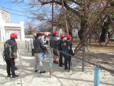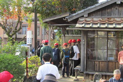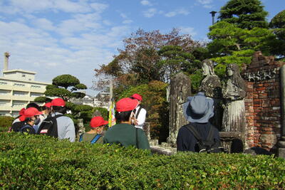 まずは、城山小学校を見学しました。被爆校舎と嘉代子桜を見学しました。