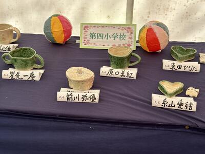 なんかん古小代の里陶器・梅まつりに6年生作品が展示