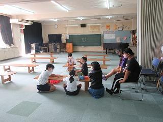 その後、グループに分かれて練習しました。3年生の子どもたちが低学年の子たちに優しく教えてくれていました。