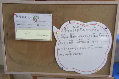 今日のメニューは、とりごぼうごはん、牛乳、てっか煮、しらあえでした。
