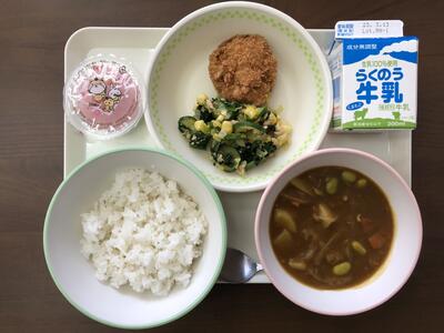 しかし、お馴染みだけれど回数が少なくて、出るとうれしいのが揚げパン。きなこと砂糖をまぶした、定番の揚げパンでした。私のような年配者には、揚げた分カロリーは大丈夫か?!と気になる揚げパンです。パン屋では食べたくてもつい敬遠するのですが、給食ならば罪悪感なしに食べられます。