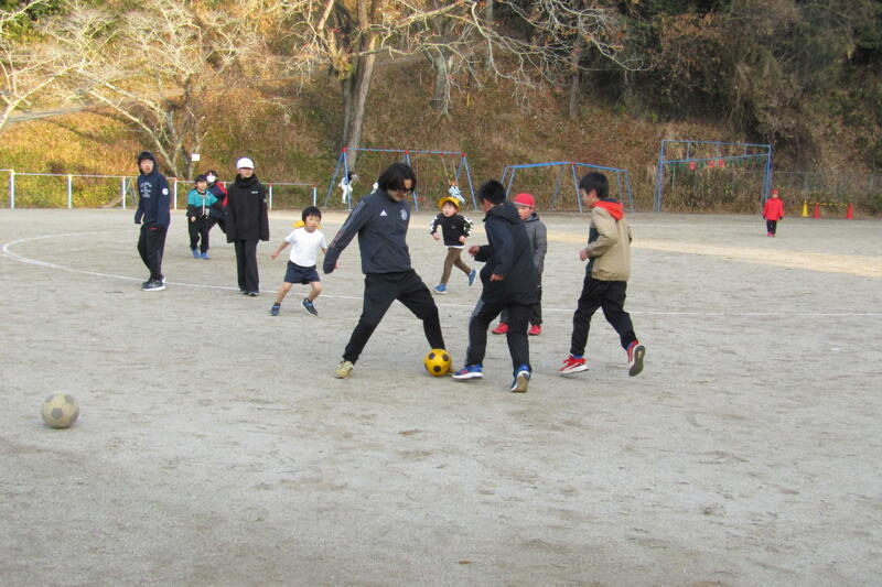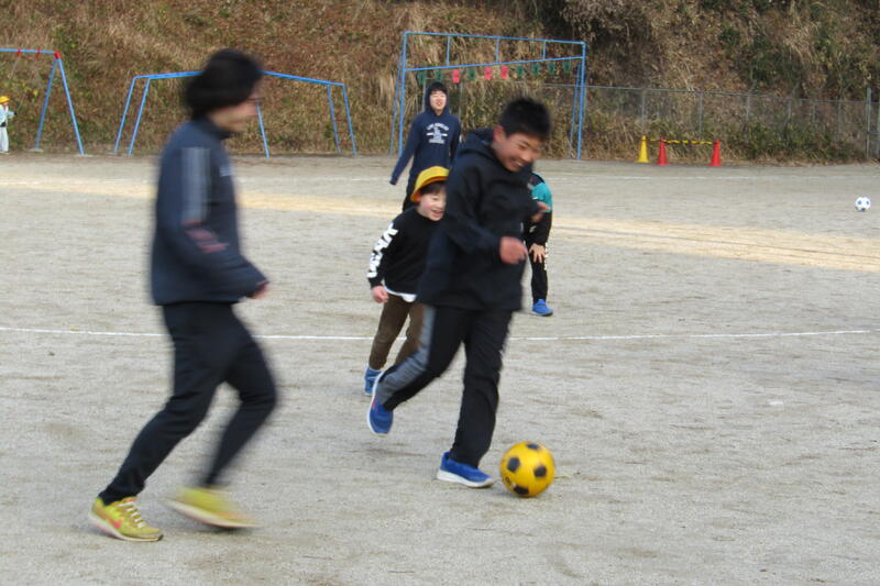 12月9日(火)の朝は空気の冷たい朝でした。学校に来る途中に外気温が1度になりました。しかし、子どもたちは登校してきたらすぐに外に出てきて、サッカーや遊具遊び、おにごっこと運動場いっぱいに遊んでいました。朝から友だちと楽しそうに体を動かす子どもたち。落ち葉かきをしていた私もすがすがしい気持ちになりました。「子どもは風の子」の言葉通りに令和の子どもたちも寒さを諸ともせずに、元気に走り回る姿に感心します。この積み重ねが、健康な体、体力作りにつながると思います。写真の中には、先生方も5名おられます。子どもたちと真剣に遊び先生方。子どもたちは一緒に遊ぶ先生方を大好きなんだろうなあと思いました。