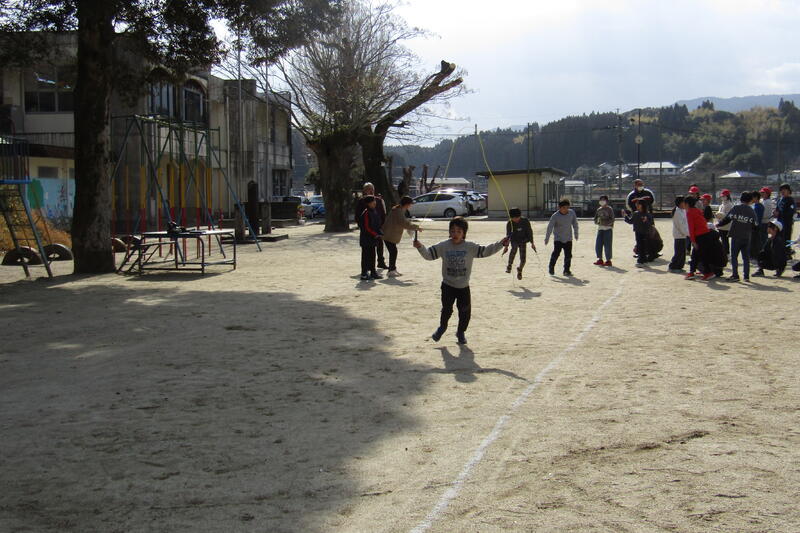 15日(木)の昼休みに、体育委員さんの主催の全校児童なわとびリレー大会をしました。赤、白に分かれて、また、その赤白をそれぞれ2チームずつに分けて、赤A,赤B,白A.白Bの4チームでリレーをしました。1年生から6年生まで、混合のチームです。順番が分からなくなるなどのハプニングはありましたが、みんなで寒さに負けずに楽しむことができました。体を動かし、すっきりした気分で掃除に取りかかることができていたようです。IMG_9365.JPG
