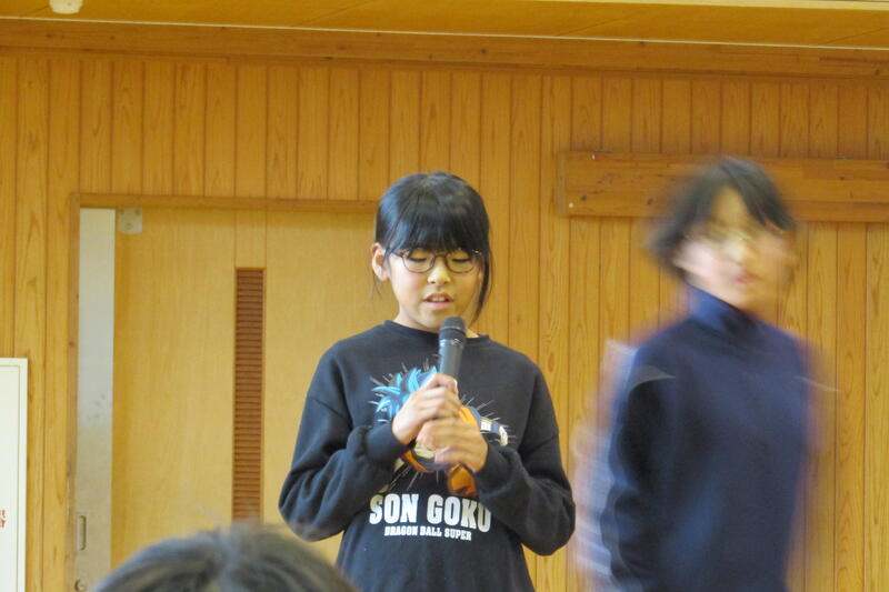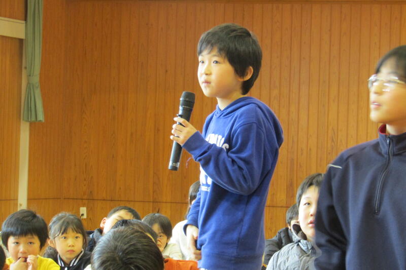 今日の四小集会は、1年生と放送委員会の発表がありました。