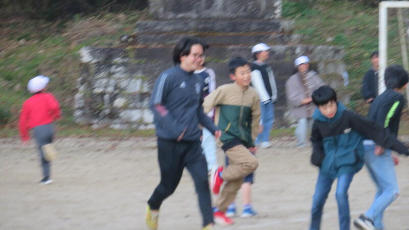 12月9日(火)の朝は空気の冷たい朝でした。学校に来る途中に外気温が1度になりました。しかし、子どもたちは登校してきたらすぐに外に出てきて、サッカーや遊具遊び、おにごっこと運動場いっぱいに遊んでいました。朝から友だちと楽しそうに体を動かす子どもたち。落ち葉かきをしていた私もすがすがしい気持ちになりました。「子どもは風の子」の言葉通りに令和の子どもたちも寒さを諸ともせずに、元気に走り回る姿に感心します。この積み重ねが、健康な体、体力作りにつながると思います。写真の中には、先生方も5名おられます。子どもたちと真剣に遊び先生方。子どもたちは一緒に遊ぶ先生方を大好きなんだろうなあと思いました。