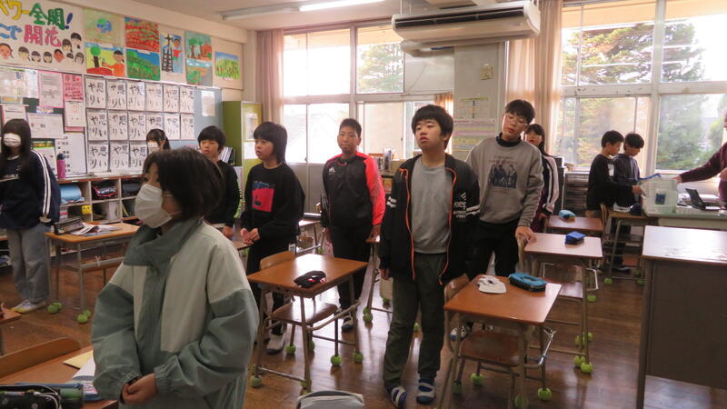 11月26日(水)の四小集会は、3年生と企画委員の発表がありました。3年生は、「すがたをかえる大豆」の学習で食材がいろいろな食品に変わることを学習しました。その後学習を広げて、「牛乳が原料でヨーグルトができる。」「小麦が原料でうどんができる。」など、他の食材からできる食品についても調べて、クイズとして全校児童に発表しました。いろいろな食材がすがたをかえることに子どもたちはびっくりしていました。そのほか、リコーダーと鍵盤ハーモニカの演奏、歌声を発表しました。元気いっぱいに、大きな声で発表する3年生のかっこいい姿に成長を感じました。企画委員会は「あいさつ」「ありがとう」「ごめんなさい」を気持ちよく言おうと呼びかけたり、新しくなった四小の人権宣言について説明したりしてくれました。明日からの四小がレベルアップするのではないかと期待できる集会でした。