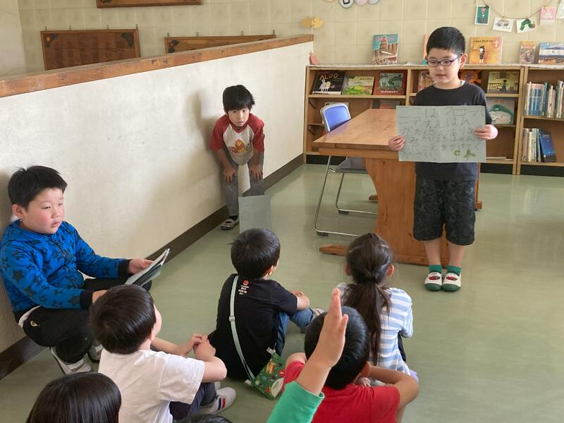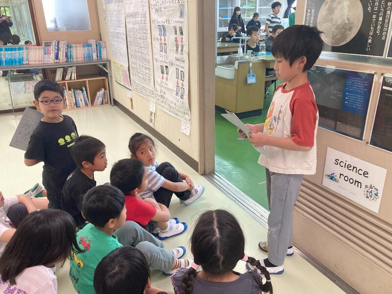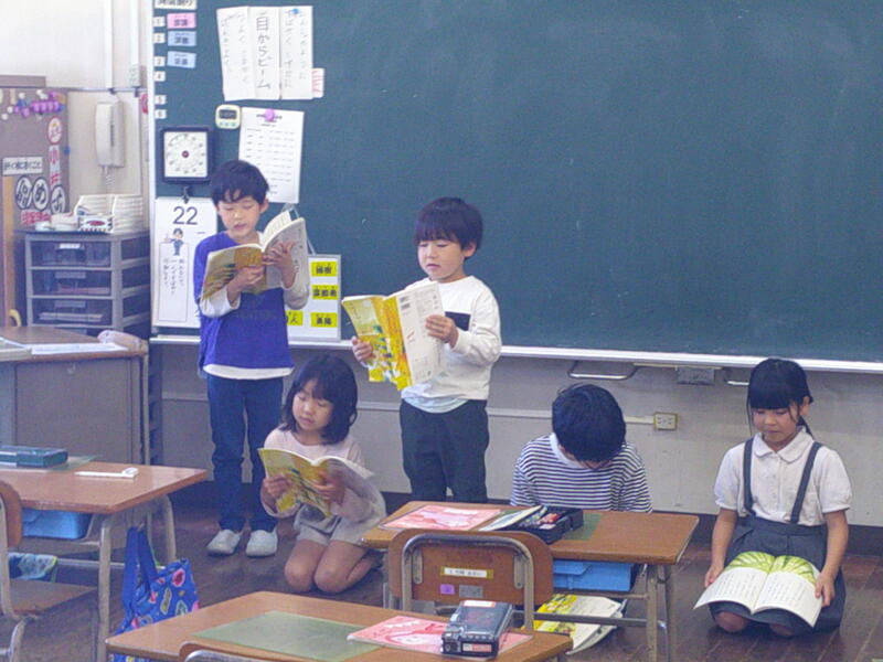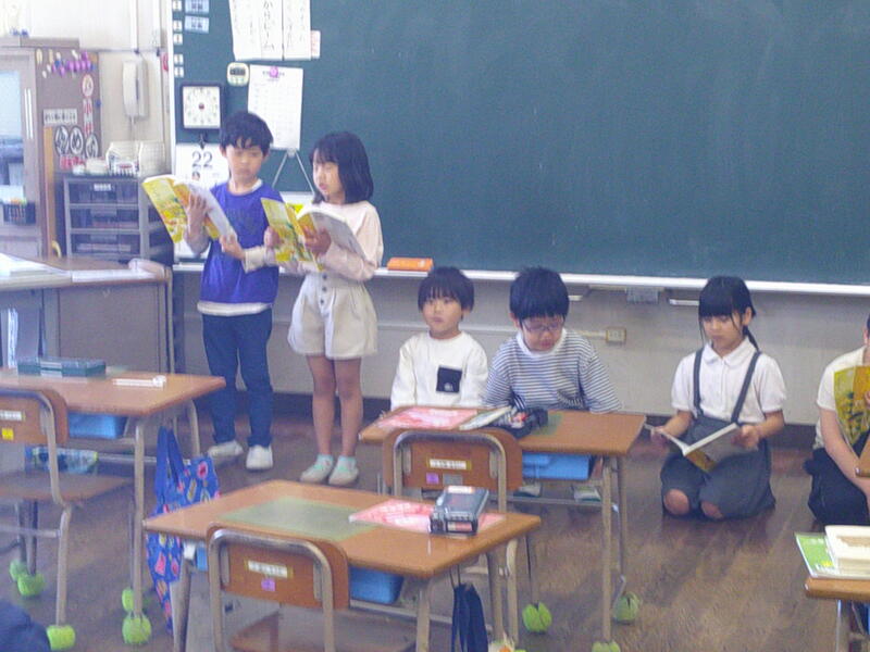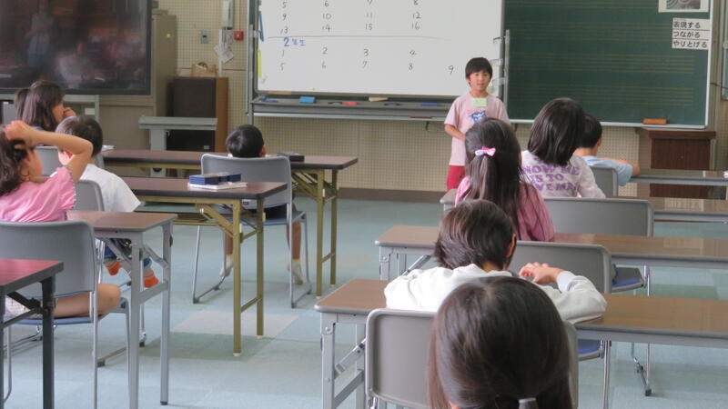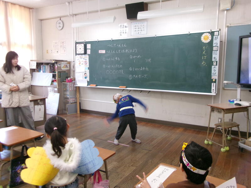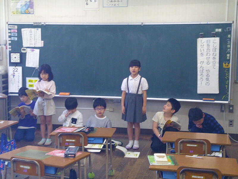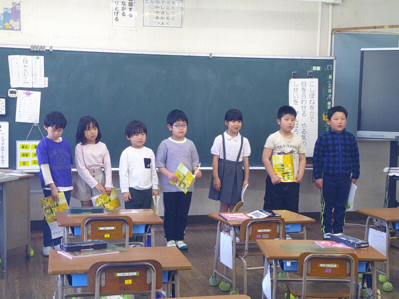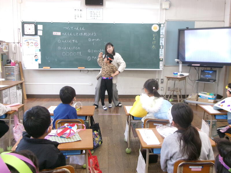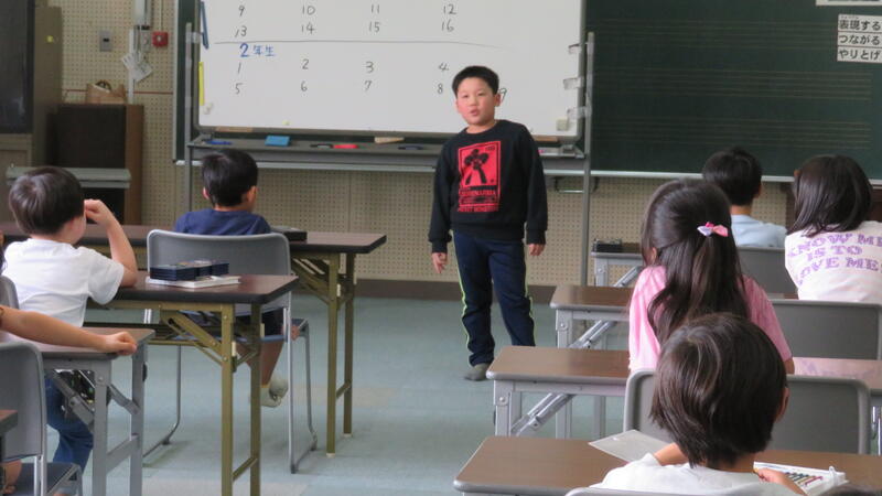 1年生のお楽しみ会は、主に二つのことがありました。4月からを振り返って思い出を発表しました。一人ずつ、発表していました。みんな大きな声で、聞いている人に分かりやすく発表をしていました。