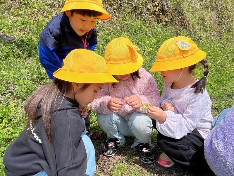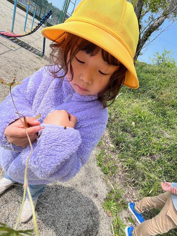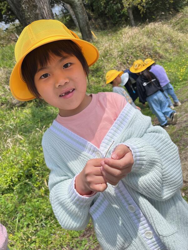 新鮮ななすはピカピカしてとてもきれいな紫色をしています。立派に育っていて一つ20㎝程度もある大きななすばかりです。なすの苗は子どもたちの背よりも大きく、なすの林の中に入って収穫する感じに見えました。子どもたちにとっては、なすのへたの上の部分をはさみで切るのは力のいる作業だったようです。頑張って収穫している内に楽しくなり、収穫の喜びを感じる時間になりました。なすの収穫の後は、さつまいもの収穫体験もさせてもらいました。つるを切ってすこしだけ、つるが土に見えている状態にしてくださっていたので、とても掘りやすかったです。一つほるとその周りに数個の芋が見えてきて、鈴なりの芋をほりあげて大満足の様子でした。掘りやすいように準備をしてくださっていたので、どんどん芋が掘れます。子どもたちは夢中で芋掘りをしました。実りの秋を存分に体験することができました。たくさんのなすといもを収穫して、とても嬉しそうな子どもたちでした。お土産もたくさんいただいたので、給食の食材用にお分けしました。どんな料理になり、給食にでてくるか、それも楽しみです。準備やお手伝いをしてくださった米田地区の方々、保護者の方々、本当にありがとうございました。