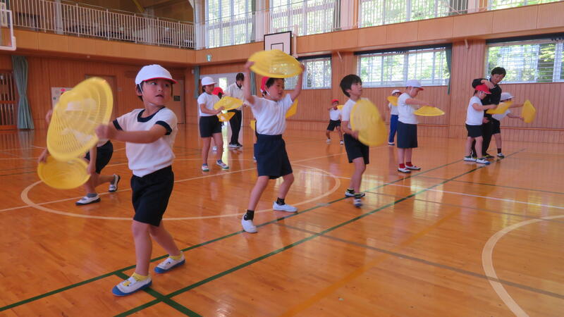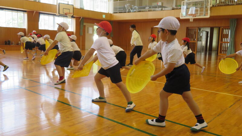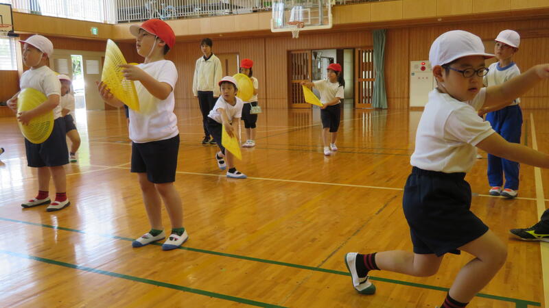 12月2日(火)に体育館で秋まつりをしました。1年生が2年生を招待しました。1年生は、2年生に昼休み等に「遊び祭り」としてによく招待もらっているので、日頃のありがとうの気持ちを込めてはりきって準備をしました。けん玉、マラカス、的当て、迷路、ボーリングと5つのコーナーを準備しました。2年生がたっぷりで遊んで、楽しんでもらえるように頑張っていました。そろいのはっぴに自分の好きな絵を描いて、コーナーを運営しました。1年生は遊び方の説明等も頑張りました。とても楽しい時間を過ごせました。