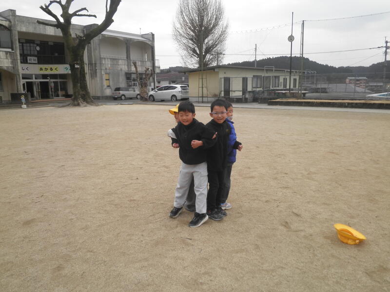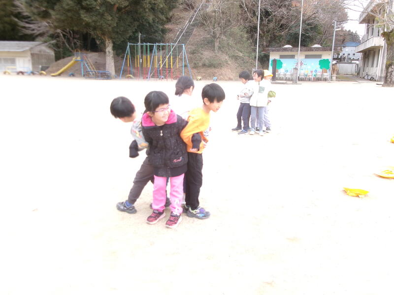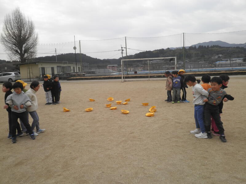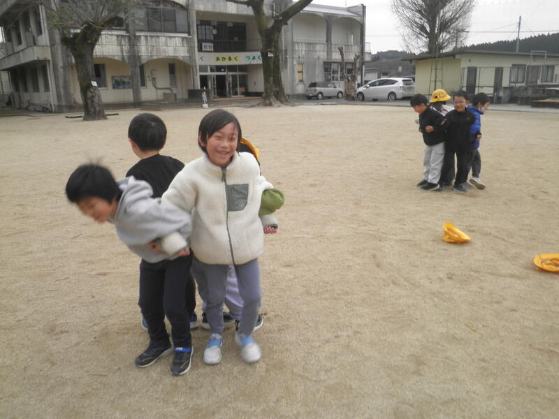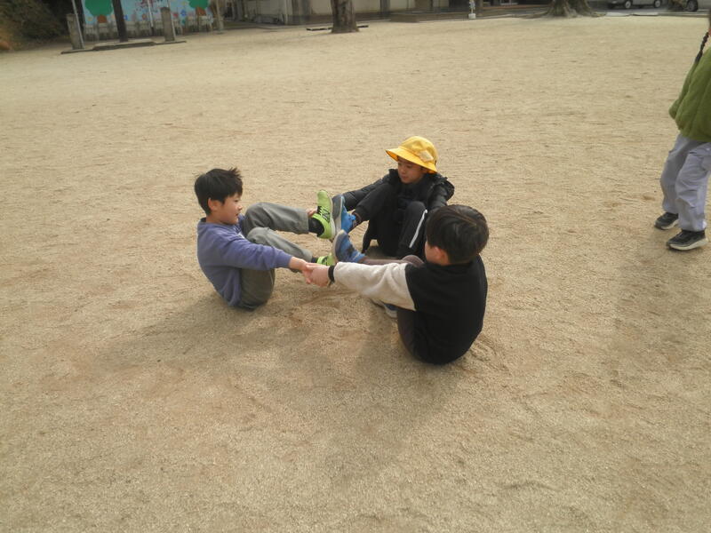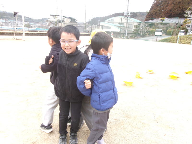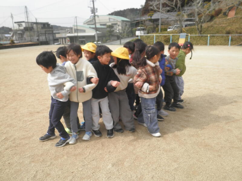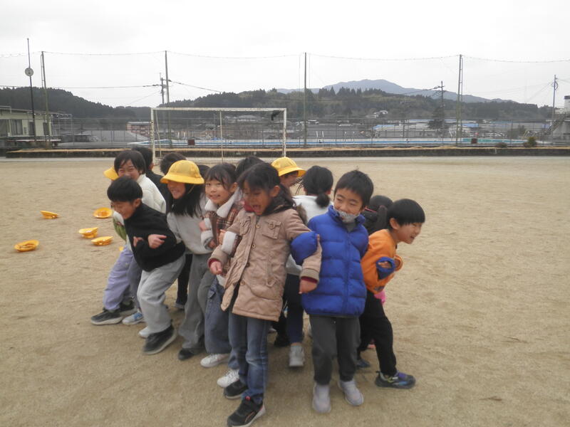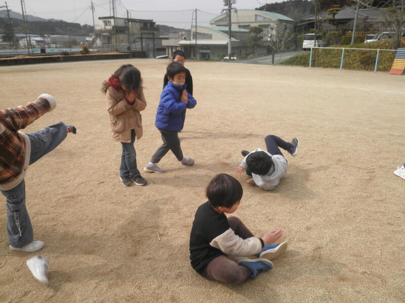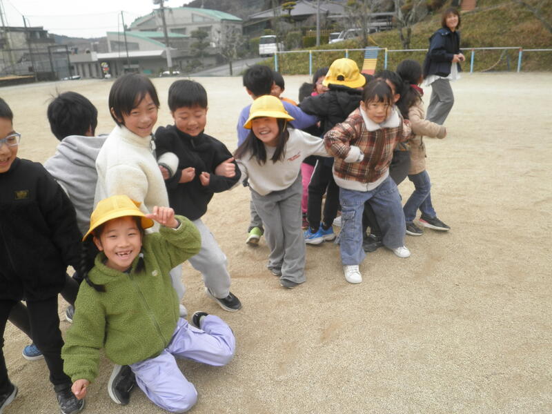 2月6日(金)に、おしくらまんじゅうとかげあそびをしました。私たちが小さいころは、寒くなると数名集まっておしくらまんじゅうをして暖をとっていました。今、運動場等でおしくらまんじゅうをしている子どもは見かけません。この日の1年生は、初めは小グループに分かれておしくらまんじゅうを楽しみ、その後みんなでしました。温かくなり、笑顔もたくさん見られました。