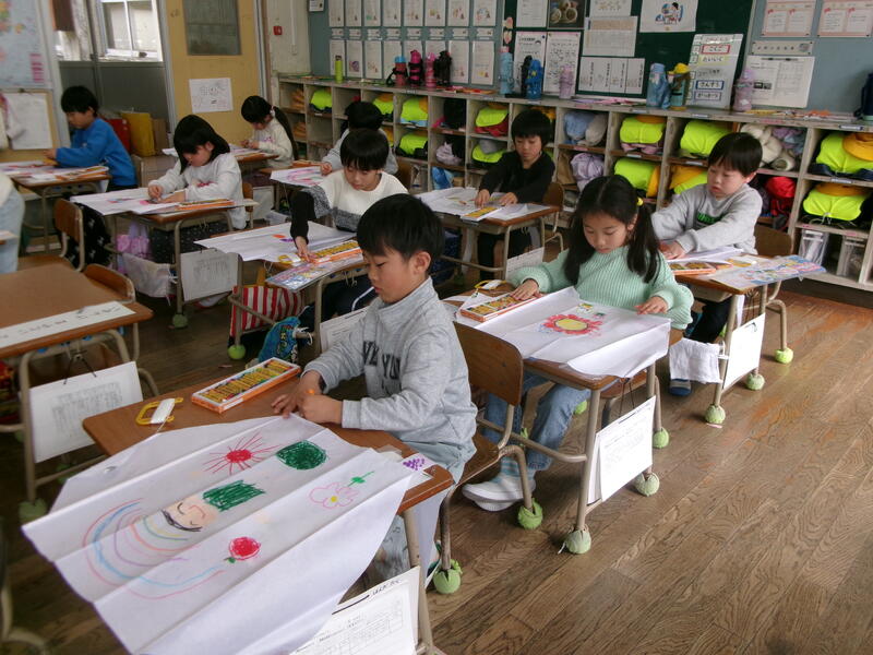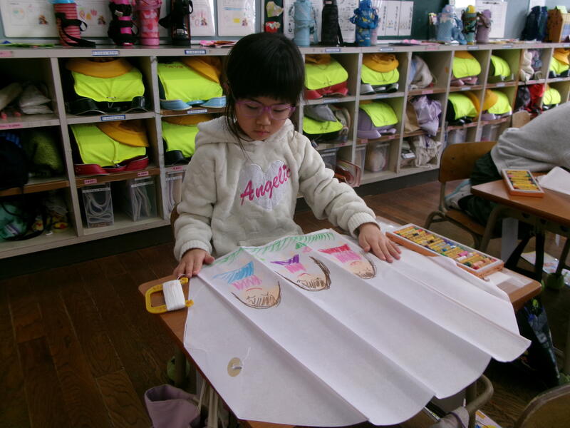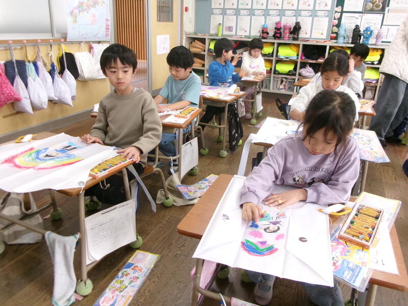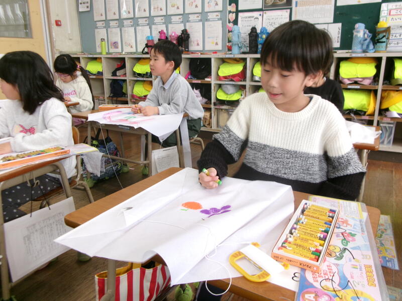 2月19日(木)の生活科の時間に凧作りをしました。和紙と竹ひごとたこ糸でつくる凧です。紙の部分には、好きな絵を描きました。みんな、夢中で描いていました。自分の好きな絵を描いた凧が高く上がることを楽しみに思いながら、描いていたようでした。凧上げをする日が楽しみですね。