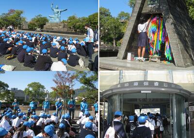 10月24日~25日にかけて、長崎方面に修学旅行にいってきました。1日目は平和学習、2日目はハウステンボスでのグループ行動でした。1日目の被爆体験講話の中で「戦争をしないようにするためには、まずは隣の人を大切にすること」という言葉が心に残りました。学びの多い2日間となりました。