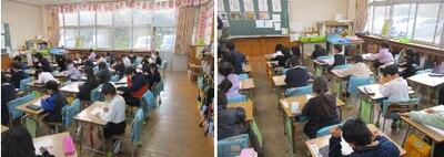 4月と12月に1回ずつあります。児童は登校しているのに、学校がシーンと静かになる日が・・・。それが学力調査です。児童は、これまで学んできたことが、どの位定着しているのかということを知る機会になります。自分の定着状況を知り、これから何を学び直せばよいのかということを考える事で、自分自身の力を伸ばすことを目的にしています。一方、教師は、自分の授業力向上に役立てていきます。児童が見せる結果は、教師の指導の結果でもあります。定着が思わしくなかった部分を中心に、自己の授業づくりや進め方を見直し、教師個人のみならず、学年・学校全体で見直していく機会にしています。