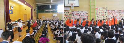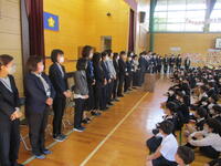 また、この日、職員の退任式を行いました。15名の職員が退職や転任となりました。これまで本校で支えていただいた保護者、地域の皆様方に感謝申し上げます。